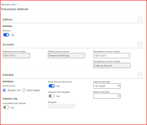 • Monthly Amortization: After creating initial deferral transactions, businesses can process monthly amortization manually or automate it using recurring batch jobs, enhancing efficiency in financial operations.